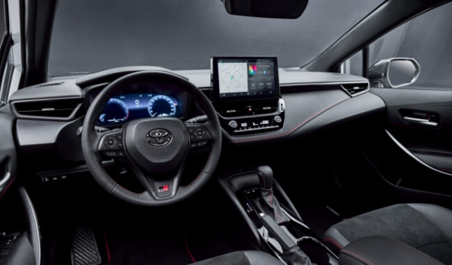 A central multimídia Toyota Play+, utilizando Android Auto® e Apple CarPlay®, reproduz diversos aplicativos. Para verificar a compatibilidade, consulte os sites Apple e/ou Google. Google e Google Play são marcas registradas da Google LLC. Apple e Apple CarPlay são marcas registradas da Apple Inc.